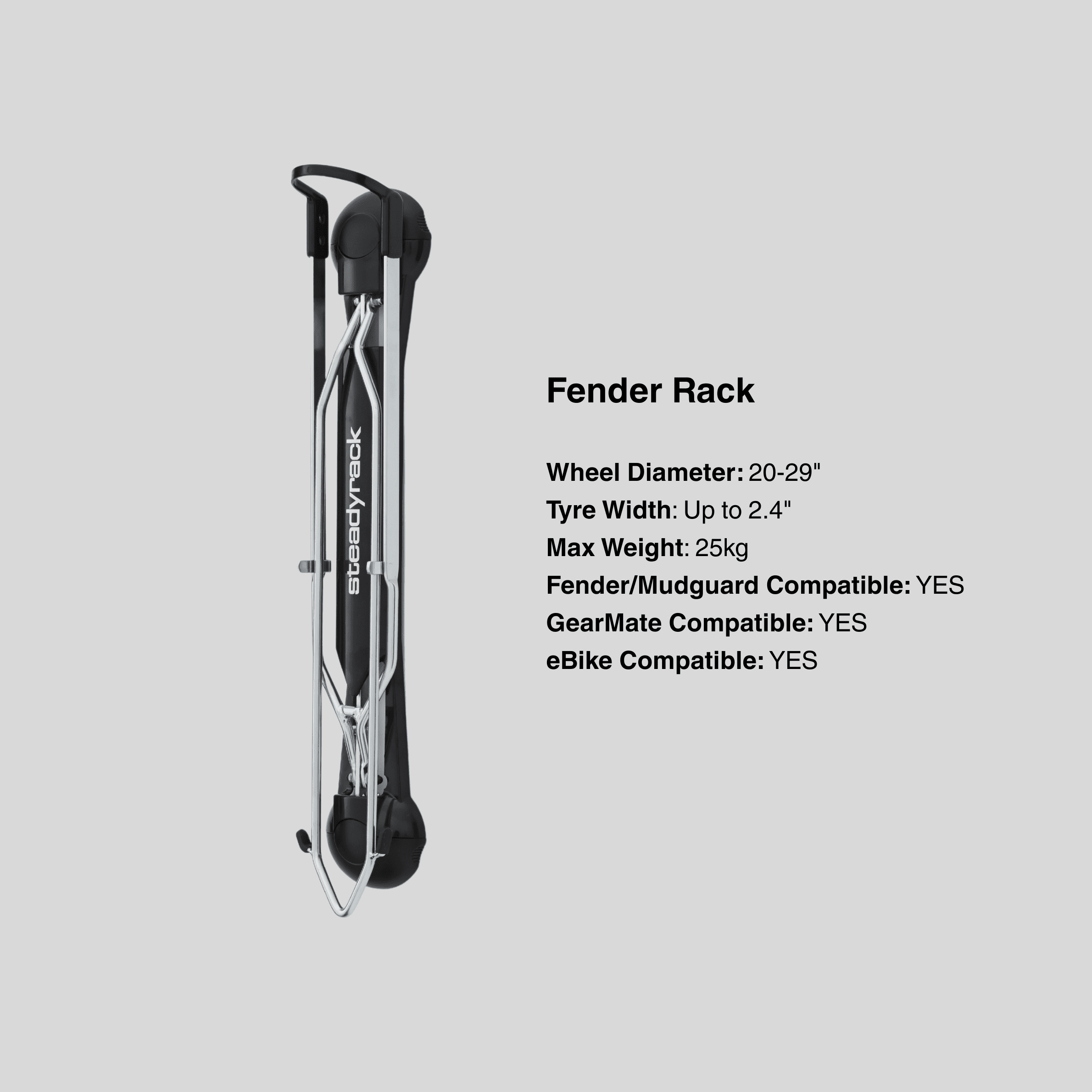Store your bike safely and efficiently with theĀ Steadyrack Fender Bike RackĀ ā specially designed to accommodate bikes with fenders or mudguards without causing damage or requiring awkward adjustments. Also perfectly suited to bikes with a tight tolerance between downtube and front tire such as Aero and TT bikes.